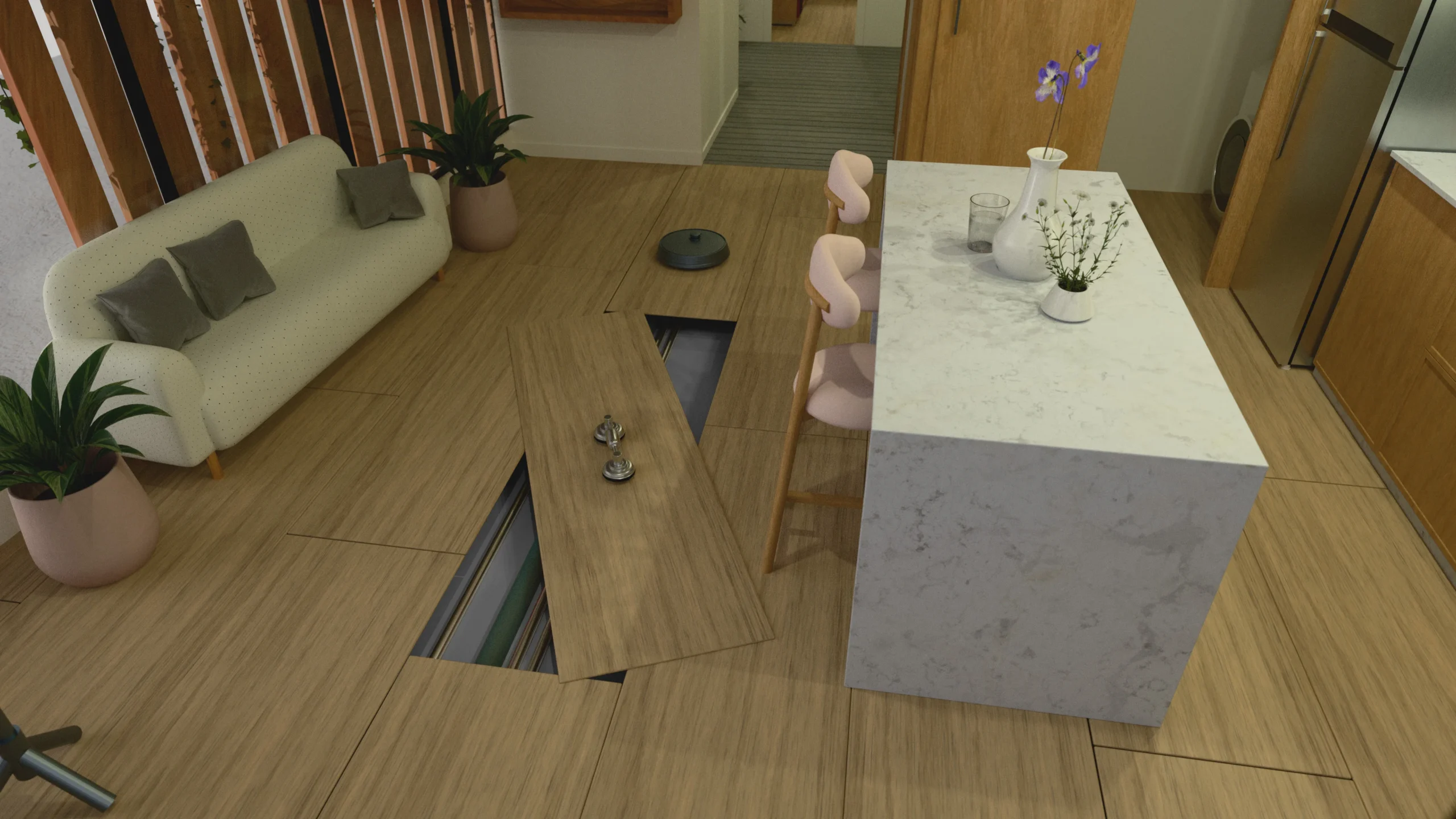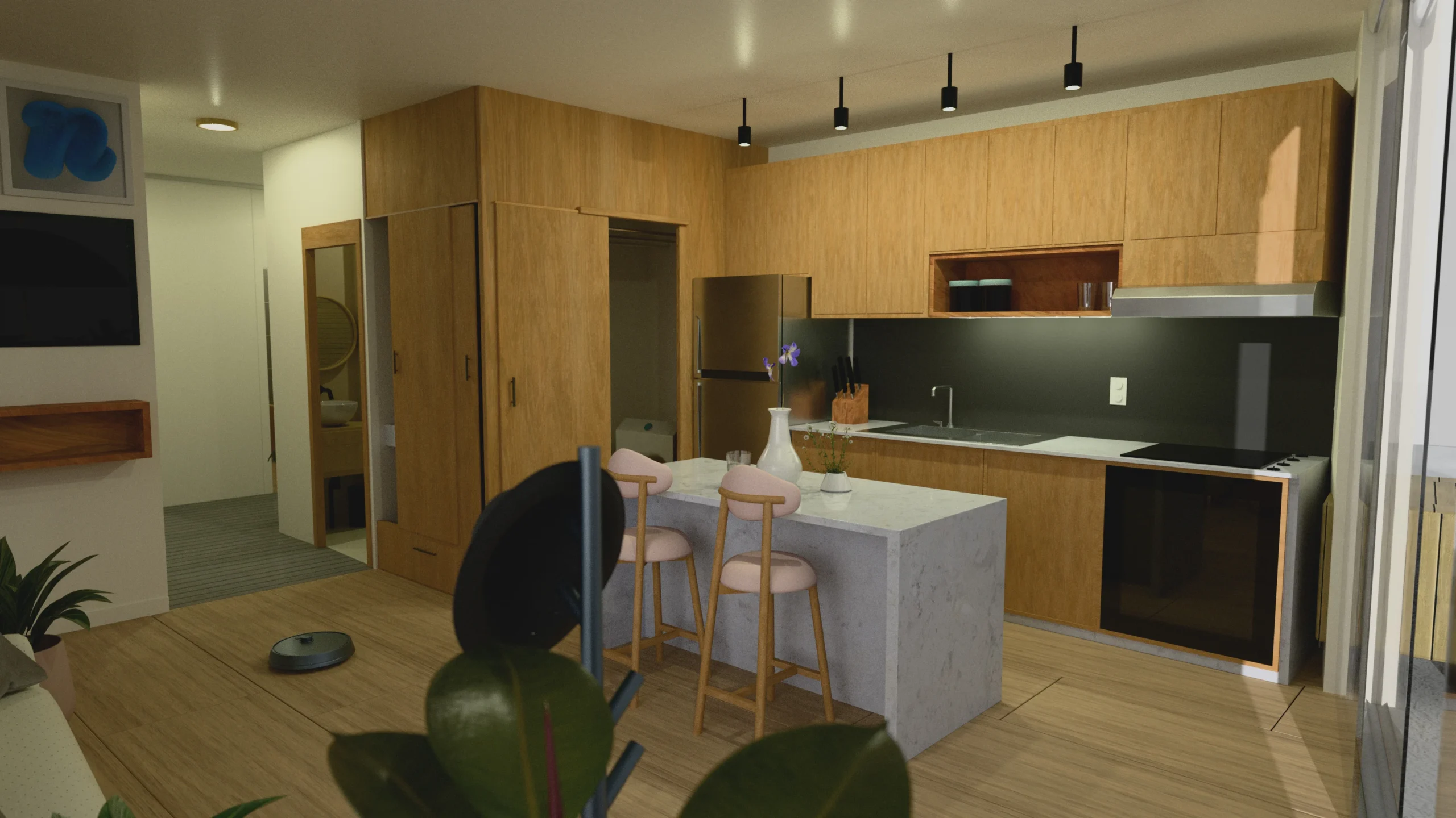 Se abordó el diseño prospectivo de una vivienda de próxima generación concebida para el segmento medio, con un enfoque prioritario en la optimización de recursos y la sostenibilidad ambiental para un núcleo de dos personas. El proyecto consistió en el desarrollo y modelado tridimensional de los espacios interiores, planteando una arquitectura funcional que armoniza el cumplimiento de las necesidades básicas con un compromiso ético hacia el entorno natural, transformando el concepto de vivienda contemporánea en un ecosistema eficiente, habitable y en equilibrio con el medio ambiente.